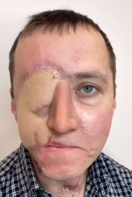 Pavel’s path to recovery was fraught with complications. His diabetes made every surgery a “gamble,” and he admitted to being “exhausted from endless procedures.” Instead of another major surgery for his nose, he opted for a skin graft, which took nearly a year to heal. In a remarkable medical collaboration, doctors even enlisted sculptors who, using Pavel’s old photographs, meticulously shaped a new nose over a custom-built internal structure. Despite these incredible efforts, the loss of his eye remained the most difficult hurdle. To protect his healthy eye from infection, doctors made the tough recommendation for its removal, a decision Pavel accepted with a pragmatic mindset: “I don’t cling to things that no longer work. If something is dangerous, it’s better to let it go than to risk losing everything.”