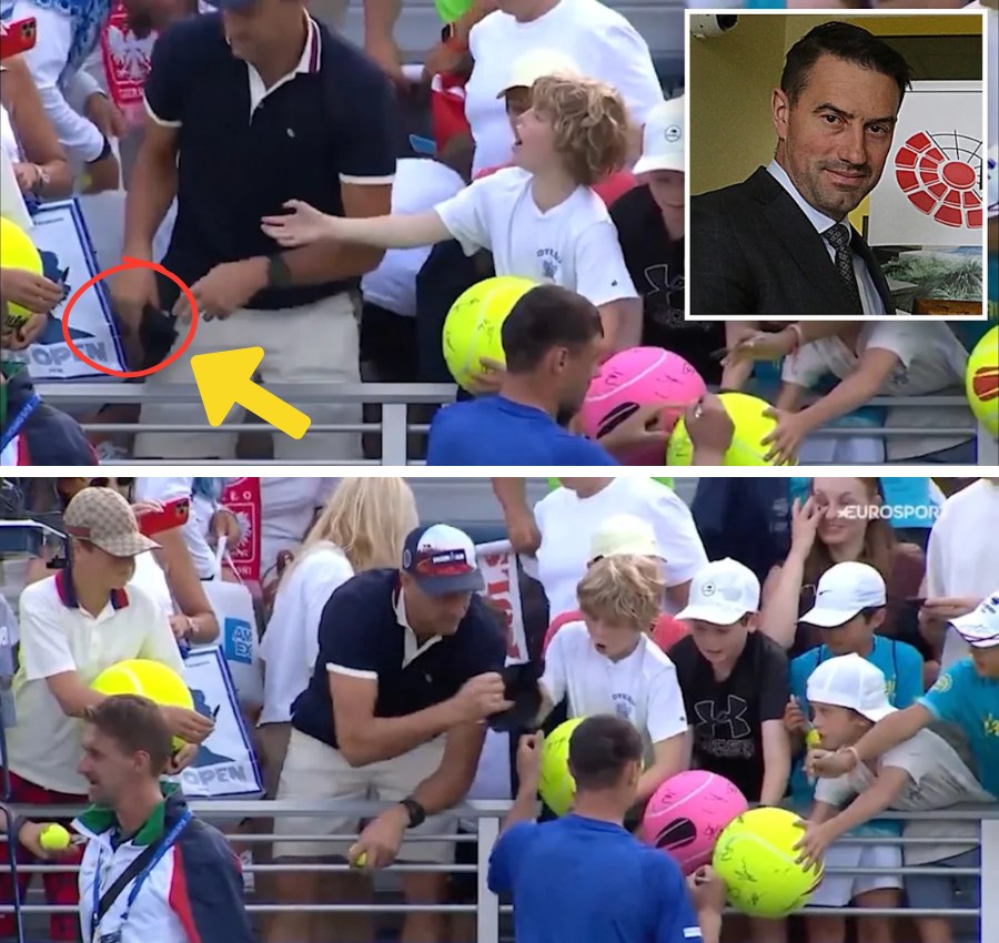 Piotr Szczerek, the boss of paving stone company Drogbruk, said he believed tennis star Kamil Majchrzak was signing the hat for him to give to his sons when he appeared to grab the cap from the little boy.